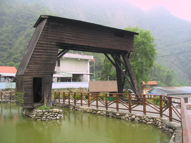 蓄木池,把砍伐的杉木先浸在這水池中。