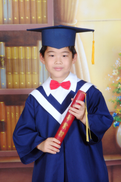 唸了三年幼稚園,畢業了。 今年要唸小學,個性調皮。 童年的另一個階段開始。真快啊! 但求健康,快樂,不要讓我操心。