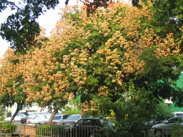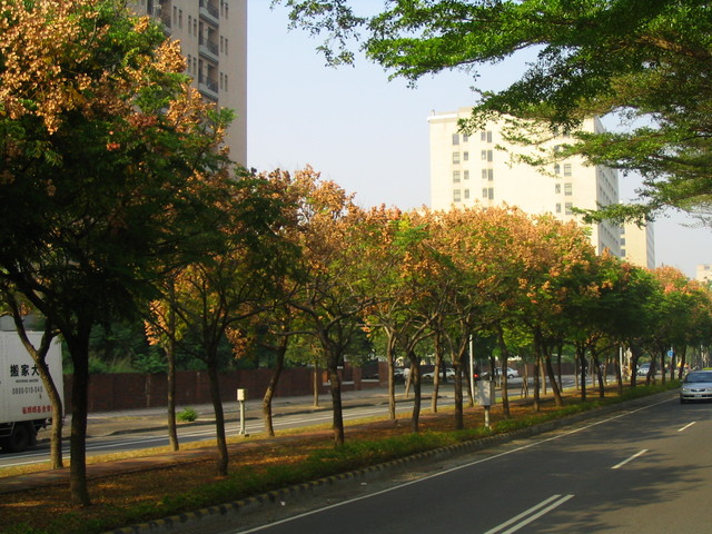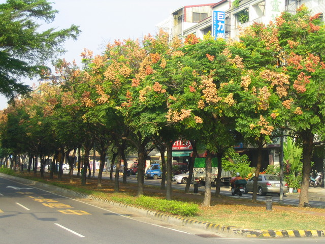 經過東豐路好幾次,每次都說要帶相機來拍,這照片拍得已經有點晚。 如果再早一點拍,樹葉是紅色的。 欒樹之美,不輸給其它樹種。 另一側。 這一張是在台中蓮園餐廳旁拍的。