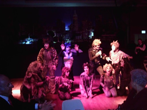 最特別的是,貓時而台上,時而台下,上台時並不一定都從後台有時從一樓側門進出觀眾席,再從台前一躍而上。中間有一幕,貓將一樓和二樓兩側前方觀眾席的包廂架設繩梯,然後就真的爬繩梯到二樓,真是目不暇給,嘆為觀止。