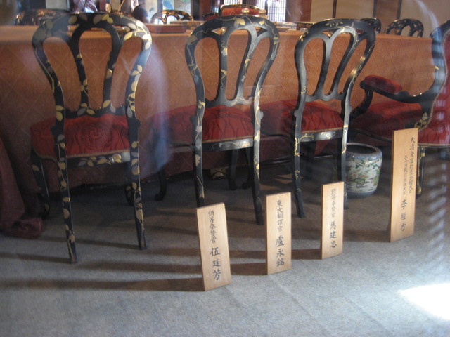 進到內部,我們看到當年談判的場景還原。哪些人參與談判,誰坐在哪邊,誰又坐在誰的旁邊,日本人考究得一清二楚。