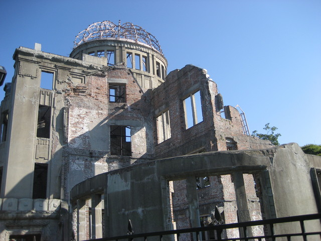 瞬間十幾萬人從陽間蒸發,建築物幾乎全毀,這間Dome型的建築還能殘留,似乎在向戰爭的殘酷做悲涼的抗議。