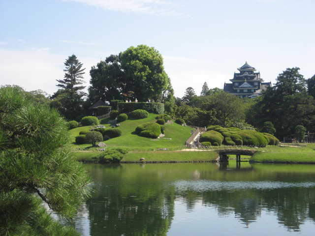 這個庭園是江戶時代的代表作,建於西元1700年,至今擁有300多年歷史,並與『金澤兼六園』及『水戶偕樂園』稱為日本三大名園。岡山後樂園當時的岡山藩主池田綱政公,用於靜心養身和接待賓客的庭園,取『先憂後樂』之意而命名。不是什麼男女幽會的後花園,不要看到『後』字和『樂』字就以為什麼後宮。然後就想到什麼佳麗三千人,鐵杵磨成繡花針之類的,靠!巴一個給你。