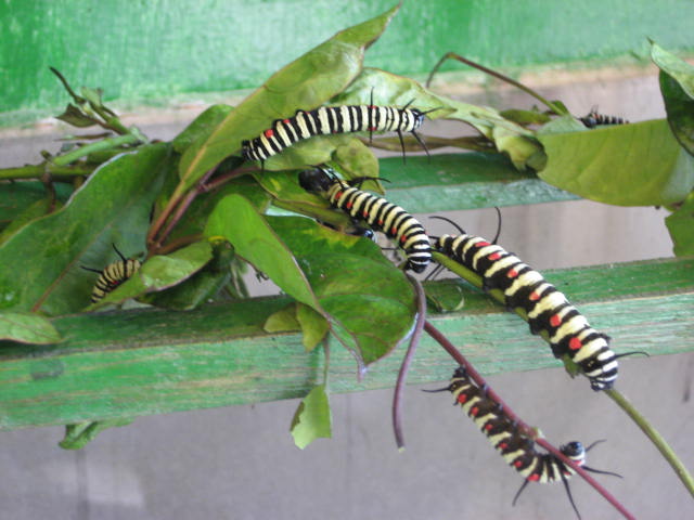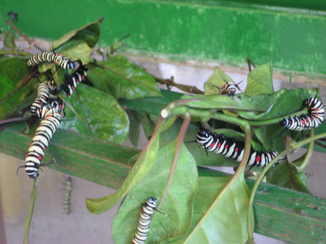 美麗的蝴蝶來自於像這樣的幼蟲。有些人看到這種毛毛蟲養蝶人家便渾身不自在。但是這種幼蟲在養蝶園裡面可是寶,要被餵在特定的食草。