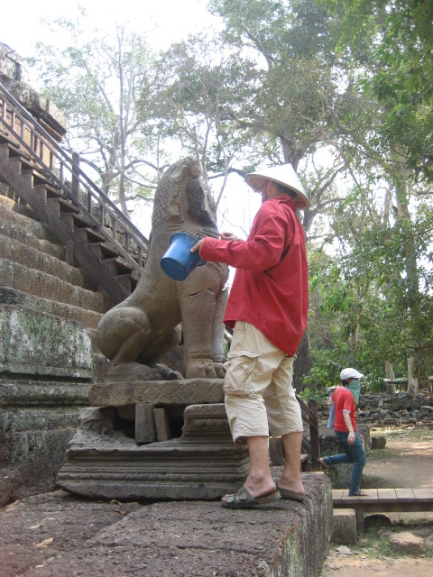 這就是古蹟修護,這是很專業的東西。台灣的台南藝術大學有這種課。 外國人會來參與這種東西,可見吳哥窟的地位還是不一樣的。