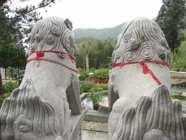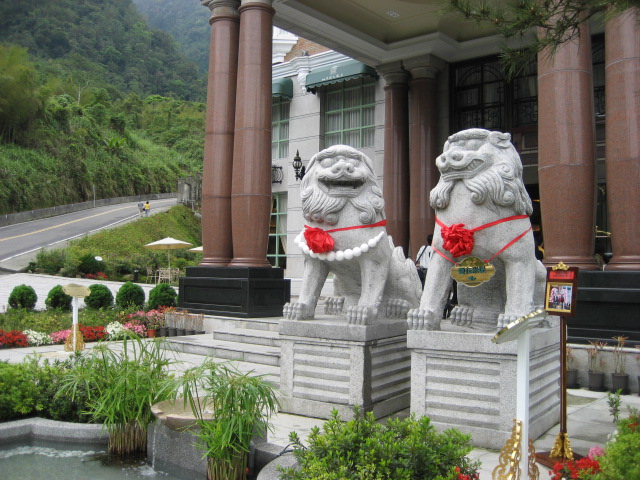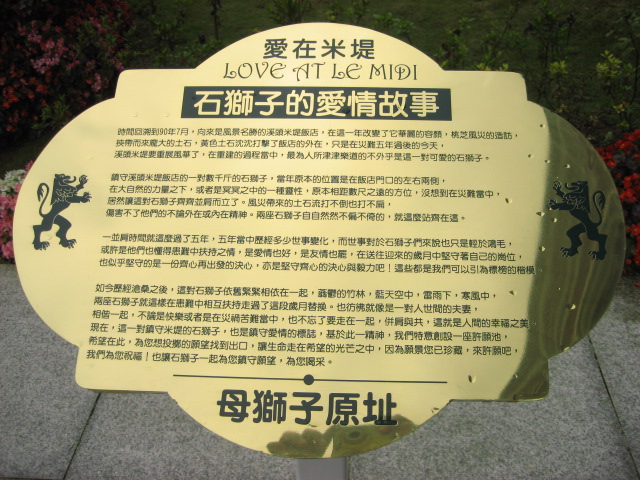 土石流的力量很大,原本擺在飯店門口兩旁的獅子被強破送做堆。幾年下來,這對獅子就屹立不搖地守在門口。↓