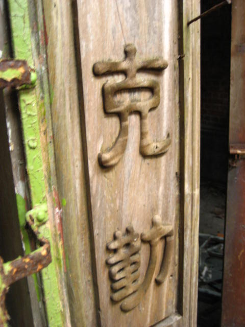 門柱的刻字採鑲嵌榫法,是先將字形描繪於底板上,待刻出凸槽後再將字形嵌入,入木深淺需視字形大小而定,所以難度頗高。