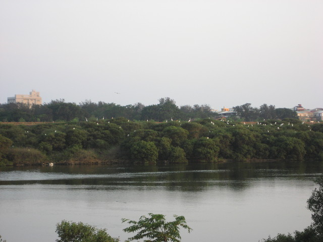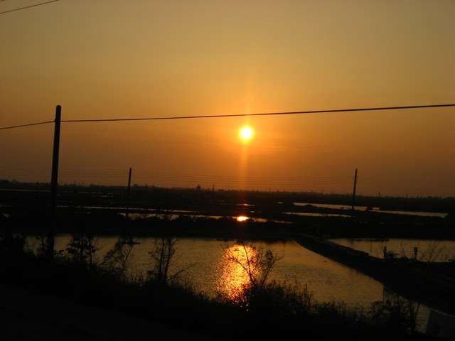前一陣子我和小孩沿著鹽水溪河堤,騎自轉車到接近出海口之地。 愛好自行車的朋友都應該知道這一條路線,有非常漂亮的生態之美。 我是在河右岸,河對面就是安平古堡。↓ 你要稱這顆落日叫安平夕照,也無不可。我是在魚塭旁拍的。↓