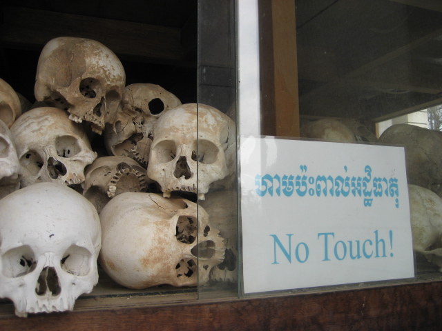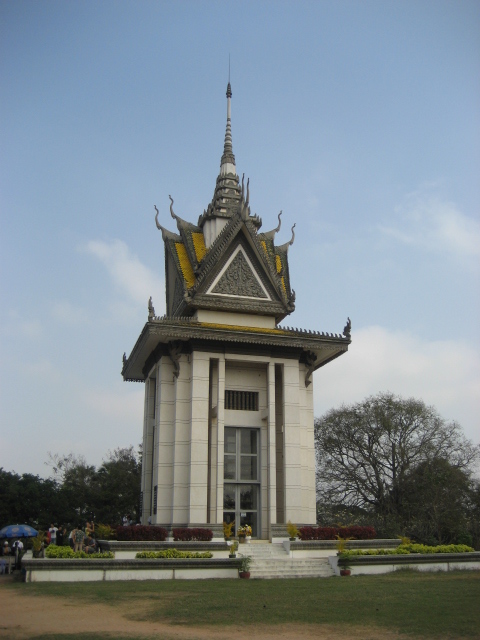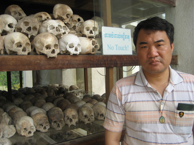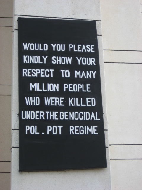 Genocide就是大規模種族屠殺。這裡是赤柬所設置的刑場。跟上一篇那個地方不一樣。這裡離金邊約四十分鐘。 最後那三個字是『波布政權』。