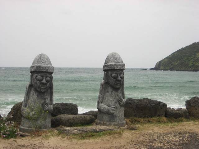 這對守護神分別代表文武。在濟州的四處可見,猶如金門的風獅爺。