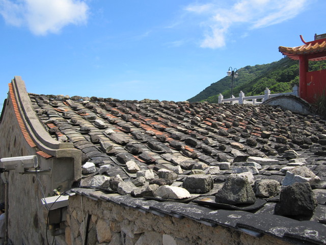 來看一下瓦片上用石頭壓著 嚴防強風掀走屋頂↓