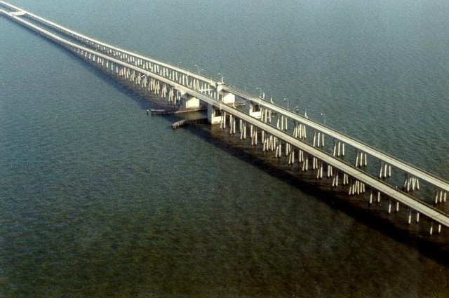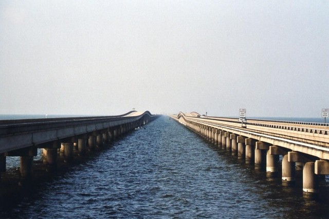 Lake Pontchartrain Causeway 位在New Orleans的附近,它是世界上最長的橋,全長24 mile大概40公里,完工於1956年。